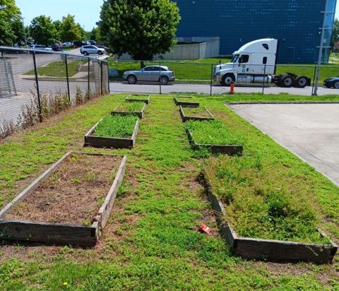 But there’s more! In addition to the school makeover, we are teaming up with Samuel U. Rodgers Health Center and Kansas City Community Gardens to revitalize the school gardens at Woodland and install new garden beds at Samuel Rodgers across the street. There’s a photo of the space below, and I can’t wait to show you the photo after volunteers turn this space into a community garden where students experience hands-on learning and fresh vegetables to encourage healthy eating habits.