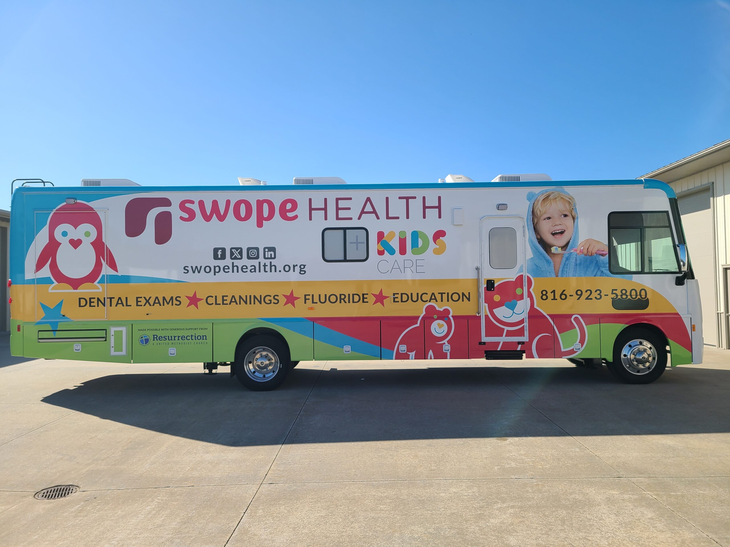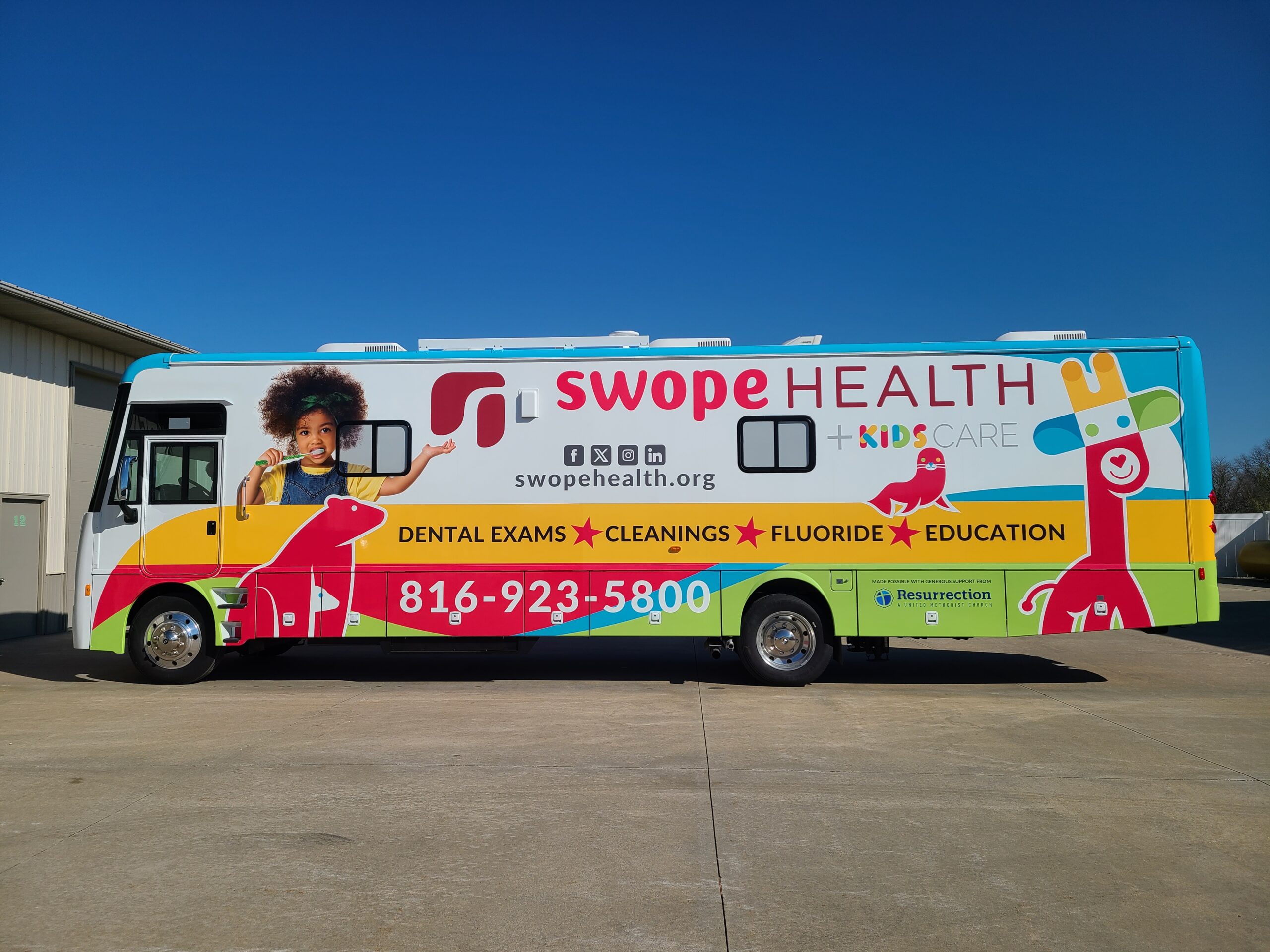 Mobile Dental Clinic on Display: After the groundbreaking, you’ll have the opportunity to see the Swope Health Mobile Dental Clinic on site. The mobile dental clinic was purchased and outfitted by your generous gifts to our 2023 Candlelight Christmas Eve offering. It’s has taken over a year to build, but we are so excited that it’s ready to start serving children in our community. This second mobile clinic will allow Swope Health to double their efforts to help meet the overwhelming need for children’s dental care in our community. Supporting Swope Health’s mission to provide affordable, accessible, and quality medical and dental care is one way Resurrection is living into our vision of “closing the opportunity gaps” and providing a future with hope for all children. I am so proud of your commitment and your generosity! Here are photos of the two sides of the mobile clinic that will be here April 6.
