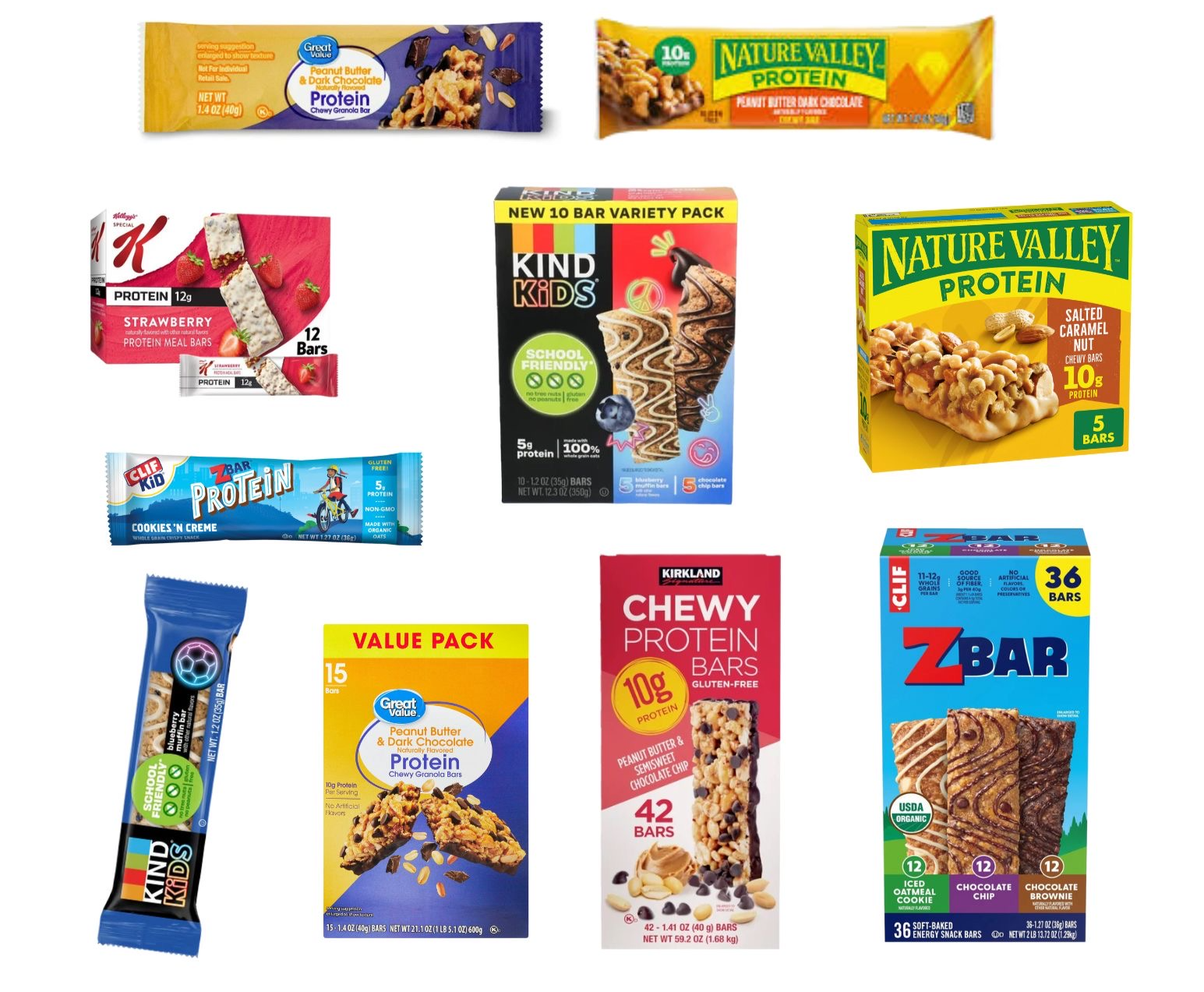 Here are some examples of kid-friendly bars. Look for bars high in protein, individually wrapped, and that kids would enjoy! Think peanut butter, granola, chocolate chips, etc.!