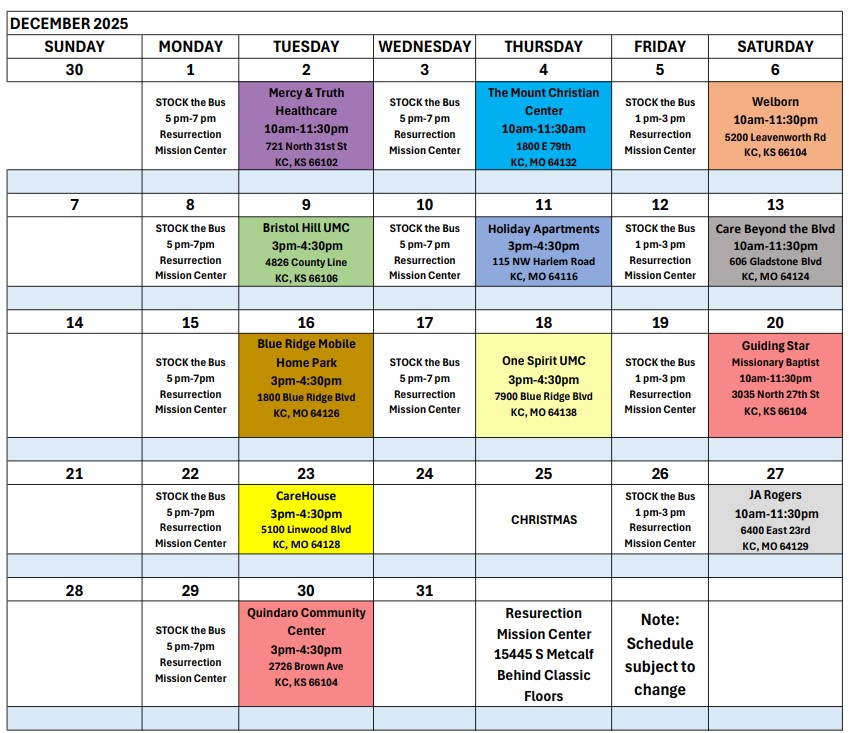 The Resurrection Hunger Ministry is an umbrella ministry with three distinct areas of focus to best serve those that are food insecure in Kansas City: