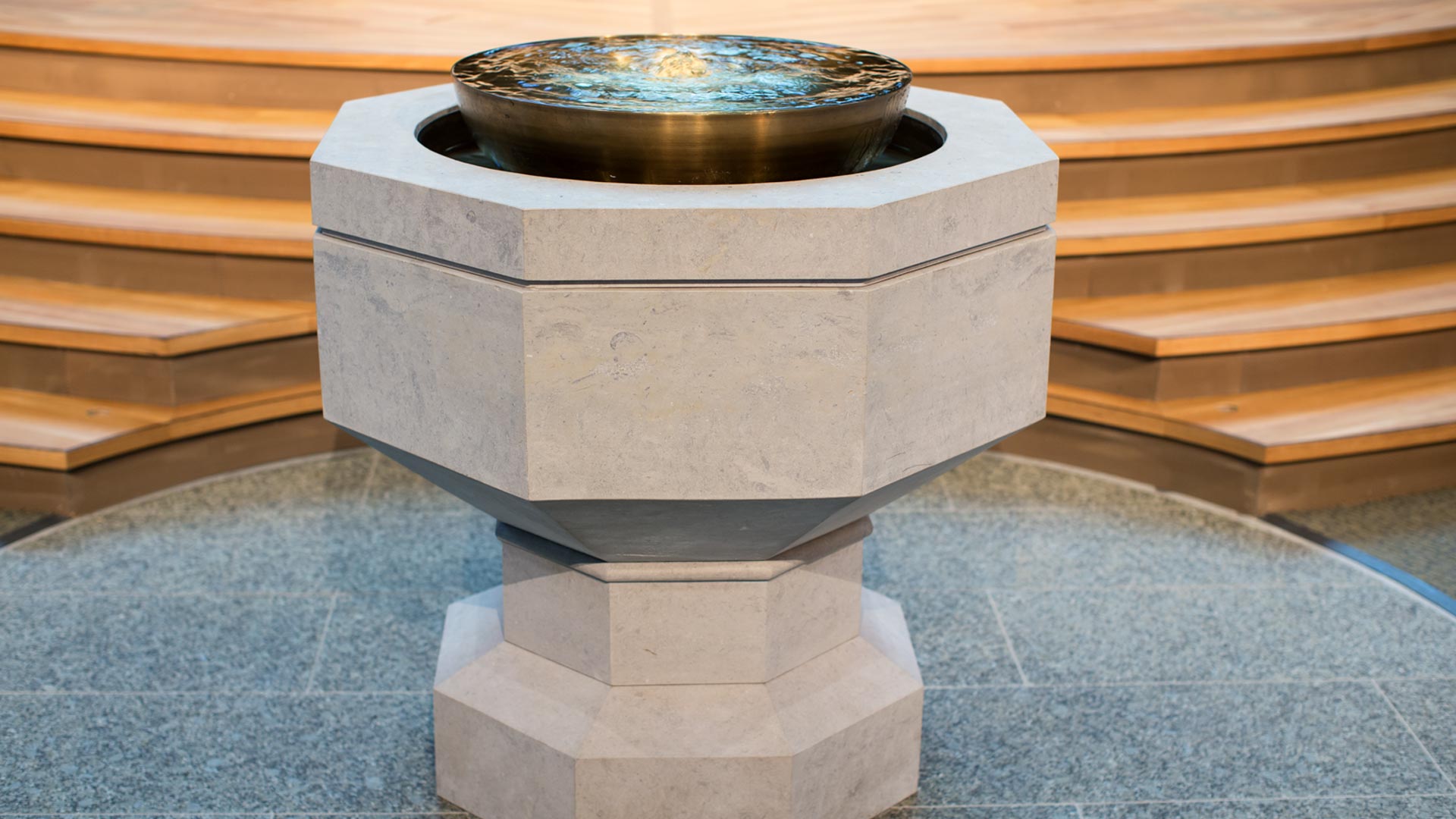 Three stone water features at sanctuary entrances are meant to be touched. Water is an important element in Scripture with many stories and references. Each time we enter and leave the Sanctuary the water reminds us of our baptism, and Jesus’ words promising living water for our souls.