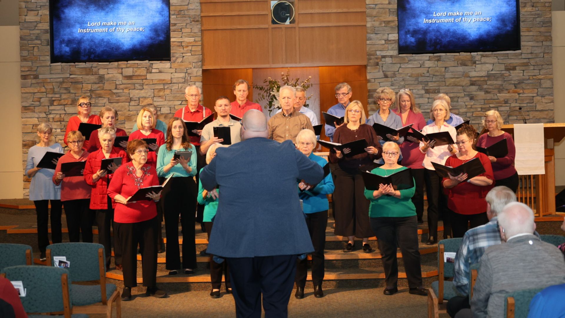 Rehearsals are on Sundays at 9 – 9:45 am, mid-August through mid-May. The rehearsals are held at the Leawood location in Rehearsal Hall B in Building A, starting August 18, 2024. The Rehearsal Hall is behind the chancel area and can be accessed by coming through the NW door by the memorial gardens and parking lot A and turning left down the hallway behind the chancel area.