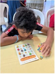 The afternoon VBC session reminded students that “You are the light of the world.”, Matthew 5:14. We reiterated that even though we speak different languages, come from different places, are many shapes and colors…we come together as one to create something beautiful in which God’s light can shine through. We crafted stained glass windows and played Bible Bingo!