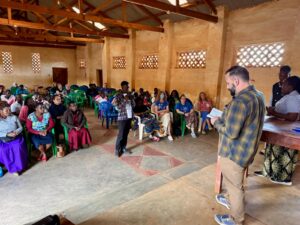 We were invited once again to the Permaculture Demonstration Farm for a delicious lunch of sweet potato in nut sauce stew, lamb, pumpkin leaves, and fresh bananas. I typically don’t like sweet potatoes but the potatoes mixed into the nut gravy was fabulous! What was so impressive is all the food is grown on the farm!