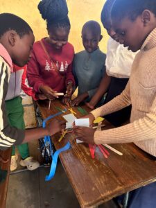 The afternoon was spent at St. Francis Catholic School, located near the Library. The class took part in several contests where students were broken into Team A and Team B and competed in spelling, history, English, and Bible character questions. The best part of the competition was listening to the students after they got a correct answer shout out in unison “Have you seen a genius?”, clap their hands, beat their chest, then arms up. We also loved hearing the students break into song throughout the afternoon, upon a cue from the teacher. COR team member “Madam Deb” broke the students into teams of six students with members from our COR team and led the class in a tower building activity. The winners of the overall competition received 1st place ribbons, chocolate bars from the US, writing tablets and pencils. The second place team received a small bag of trail mix, writing tablets and pencils so no student went away empty handed. We then spent some time outside in the compound mingling with our Opulence partners and playing games with the local children. At the end of the program one of our team members asked a student what was his favorite part of the day and his response was “spending time with you.”