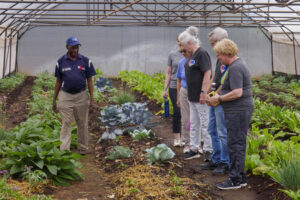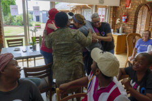 The afternoon was spent with Salaminah, Ditshego’s Fund Raising Manager, sharing about their history and work in the area, as well as getting a tour of the Raslouw Ditshego facilities. We got greetings from the children who attend the open school, which is for children who do not yet have the proper documents to start at the local schools. The teachers work with them for up to a year, helping them keep up with their learning. We saw various spaces where the staff supports the community by working with parents also. September, their garden manager, showed us around their permaculture garden. They grow many varieties of vegetables in the garden and greenhouses, plus have planted fruit trees out back. Before we left, we met the chickens in their coop. The staff collects about 45-50 eggs a day that they sell in the community.