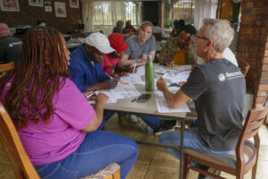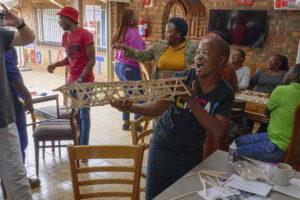 Dumela – hello, from South Africa! Today was a day spent with the Ditshego management staff. Beth planned some fun team building activities that gave the Ditshego staff and the Resurrection team a chance to get to know each other better. We had a gratitude scavenger hunt first. We got into groups and set out to find items on a list that had to do with things we are grateful for. By the time we had completed our lists and shared out with the entire group, we were strangers no more. I see why the school is named Ditshego House of Laughter. We laughed together all morning! We took a mid-morning tea and coffee break and served our hosts, letting them know how much we value them. Next, we built bridges figuratively and literally. Using popsicle sticks we wrote words on them that represent building bridges within groups of people. Then we used the popsicle sticks to build a real bridge. The glue was as plentiful and spread around as the smiles and laughter! Lastly, the groups designed zoos. Using scripture that references how God wants us to care for the animals as a starting point, we created our zoos.