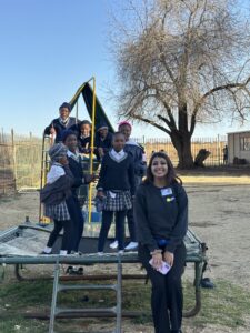 Later, we taught them the electric slide! A fun activity for everyone involved. We also had the chance to enjoy some authentic South African food for lunch, and we helped with the dishes after our meal to return the kindness. The day wrapped up with a tour of the plot and time spent getting to know the children, which helped us understand more about their lifestyle.